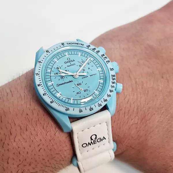 * **بند چرمی/سیلیکونی با لوگوی Omega** که هم دوام و هم راحتی را تضمین میکند