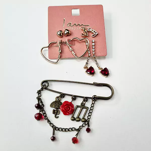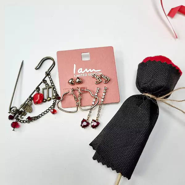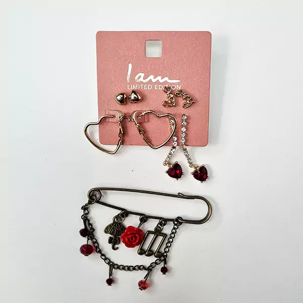 این پک زیبا شامل مجموعه‌ای از **گوشواره‌های متنوع و یک سنجاق سینه خاص** است که با ترکیب رنگ جذاب **قرمز و طلایی**، انتخابی چشم‌نواز برای استایل‌های شیک و خاص محسوب می‌شود. طراحی‌ها الهام‌گرفته از سبک کلاسیک و فانتزی بوده و برای استفاده روزمره یا مناسبت‌های خاص کاملاً مناسب‌اند.
